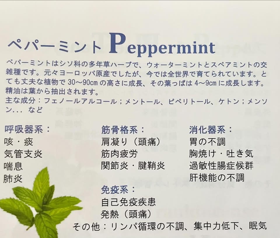 先日ご来店のお客様…アロマ(ペパーミント)を手の平に一滴💧