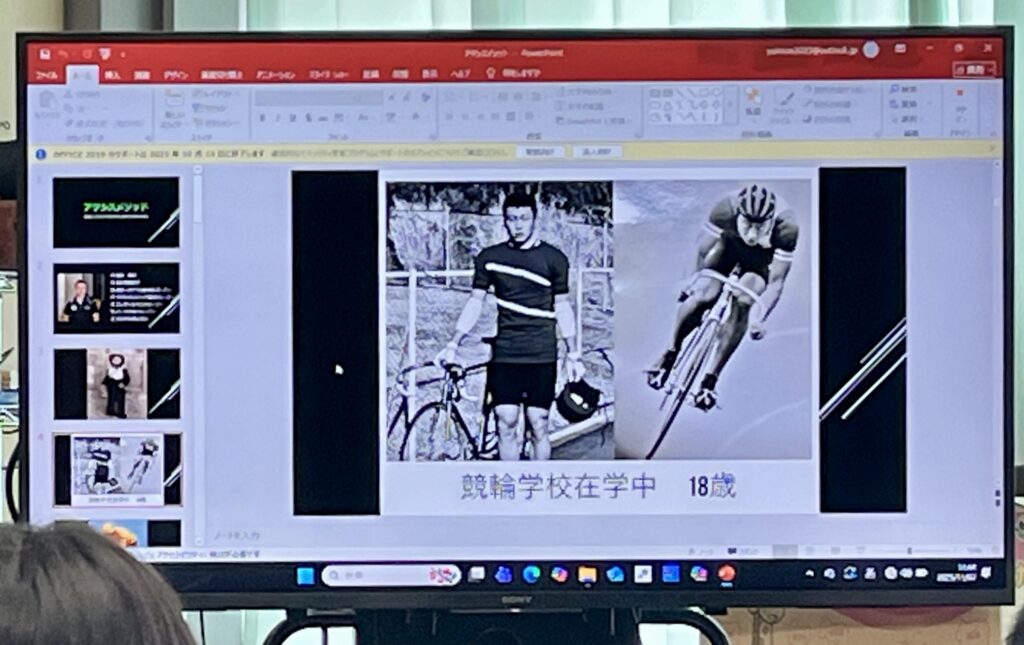 生徒達は講師の事前情報から興味がある講師の話を聴きに行くというスタイルで、僕も20名の生徒達を2つのグループに分けて約50分づつ、僕の生い立ち、学生時代、競輪選手時代、現在の仕事、等の話しましたが時間が足りなくて最後はバタバタでした😅💦