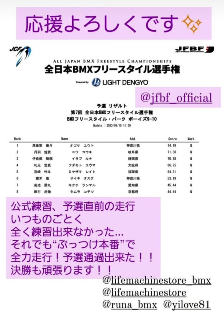 #全日本BMXフリースタイル選手権 で予選3位通過で決勝進出です!