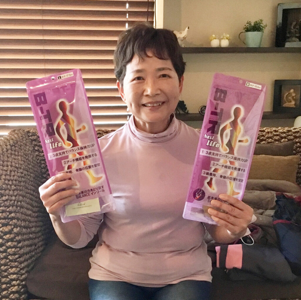 試し履きで現在使用中のインソールとの違いを実感されて、ご自身とご主人の分2つ購入されました(≧∀≦)