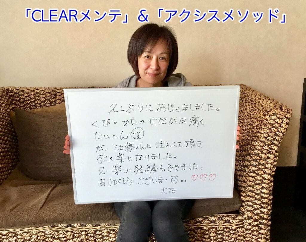 首・肩・背中が痛くて辛い💦と、ご来店のOさん。。 頭をチョン👆の不思議な施術から内臓へのアプローチ・・最後に「CLEARメンテナンス」でバッチリ仕上がりました😊👍 アクシスメソッド体験もして頂きお役に立てて良かったです(≧∇≦)素敵なコメントもあり... -