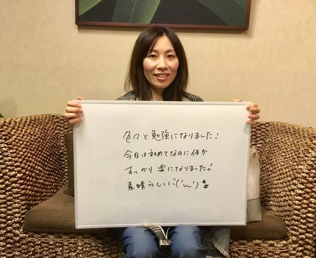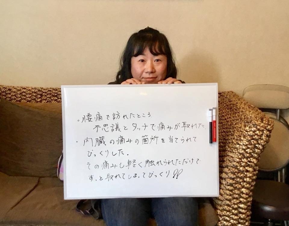 最近、患部を指で弾いたり…腹部に手を当てて内臓に語り掛けたり…怪しくて不思議な施術法も取り入れているのですが。。。 定期的にメンテナンスされてるHさんに感想を頂きました!↓ ↓ ↓ ↓ ↓ 『朝から下腹に生理痛の様な鈍い痛みがあったのですが、特に話し... -