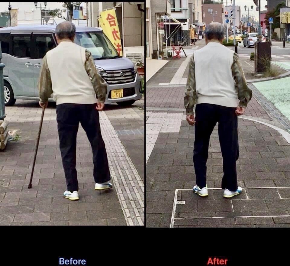 【#事故や病気の後遺症に。。】 脳出血で右半身が不自由なお客様が、「#アクシスメソッド」「#CLEARメンテナンス」でこんなに改善されました(^^)v #体幹軸が発揮される様になった事で、杖に頼って左に傾いてた体と前傾してた腰が真っ直ぐになり、外に流れ... -