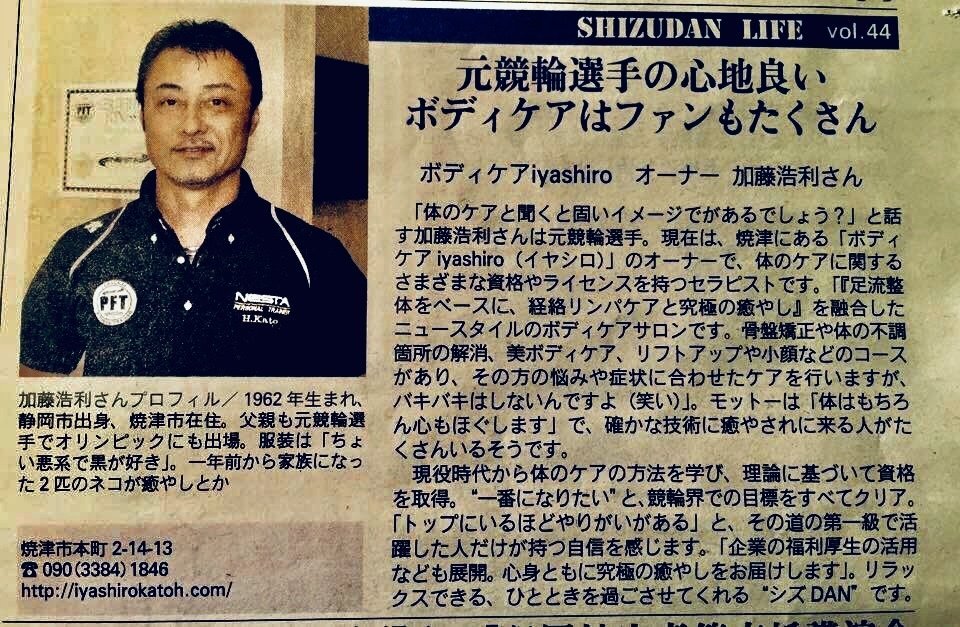 3年前・・「リビング静岡」に掲載された懐かしい記事を発見 この頃は「癒しマッサージ」と「CLEAR」のコラボケアでしたが現在は「アクシスメソッド」も導入して更にパワーアップ 是非ご利用くださいね 可能性の扉を開けるサポート致します癒しマッサージス... -
