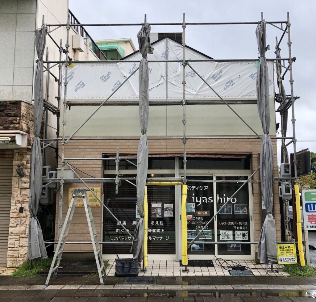 【#ボディケアiyashiro】 本日から10日間の予定でサロンの外壁塗装と新しい看板の設置工事を行います! オープンから14年3年前の台風の被害でキズだらけになったサロンの顔を職人さんに綺麗にして頂きます 茶色ベースでバリ風のイメージから黒ベース... -