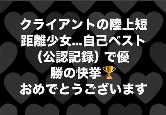 クライアントの陸上短距離少女Nちゃん…自己ベスト(公認記録)で優勝の快挙です🏆 小さな体でストライドを大きくしようとして足が流れる→→フォームの改善に取り組むが中々上手くできない→→タイムが伸びない…のジレンマに、「欠点の克服よりも自分の持ち味を... -